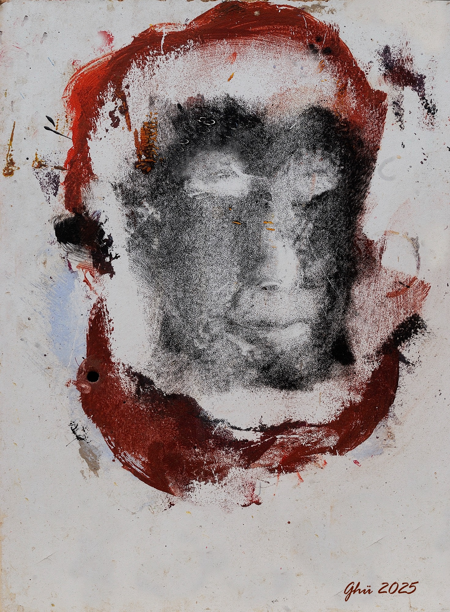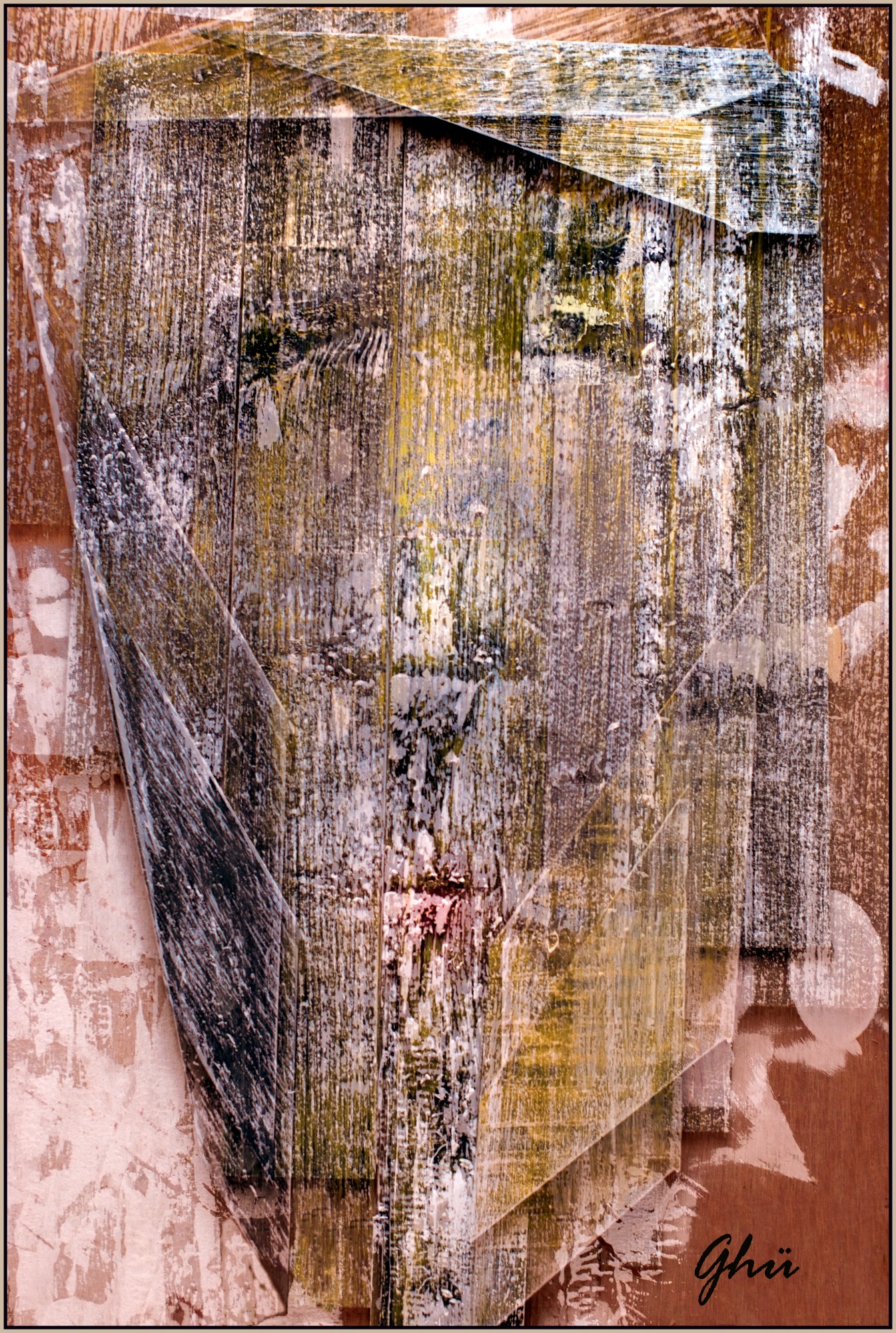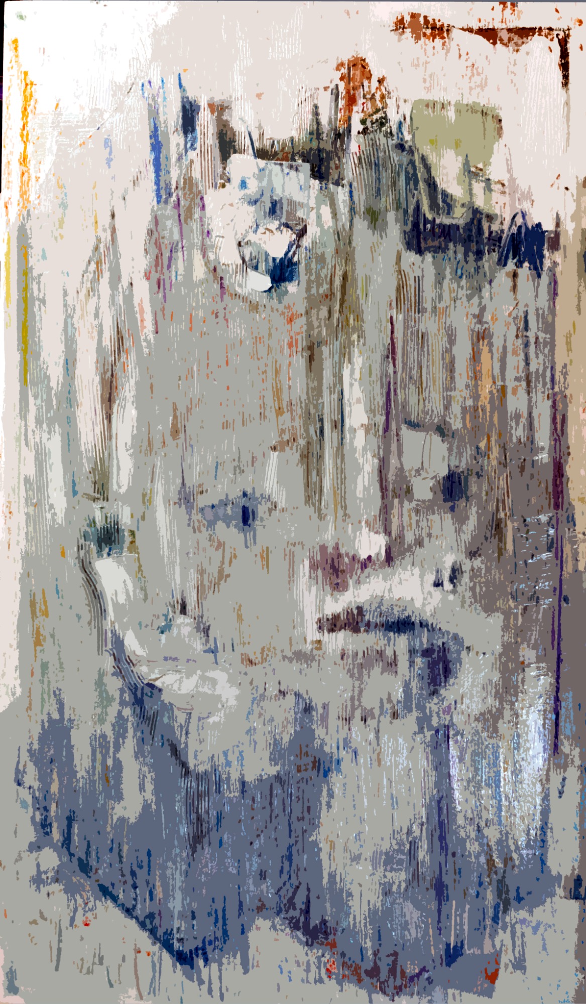 " Autant que les espaces changeants, je suis la cause de ces métamorphoses . A projeter ses yeux sur l'étendue où il repère des teintes pleines et des matières nues ou vides , le corps a déjà commencé de fragmenter un visible , lui-même s' y projetant est un corps éclaté . Dans le passage du propre corps à son double imagé qu'est pour lui toute image , tout se disloque : c' est à cause du vide et du plein qui s'y déplacent , changent les configurations en inversent le sens . Ce sont des arrangements de teintes et de mots qui ont des effets de corps et d' espaces . S'il y a quelqu'un ici ,il est là ." Marc Le Bot : " L 'œil du peintre " 1982/ p;156